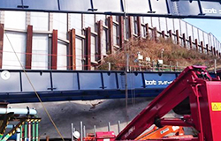 一般的に架払(きょうりょう)と呼ばれる鋼橋(架設橋)の設置を行っています。